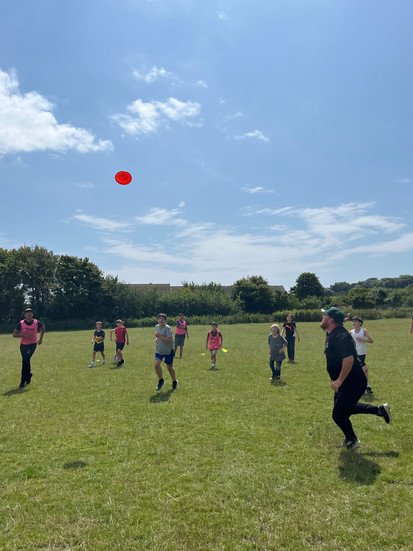 Day 1 started with glorious sunshine… and ended in a downpour! The heavens opened and soaked us through, but this time we were ready. Learning from our first camp, we’d secured the indoor facilities at Sussex Downs Sports Centre, and we made the most of them! Dodgeball, basketball, and loads of fast-paced, transferable skill games kept the fun (and the learning) going strong. Rain definitely didn’t stop play!